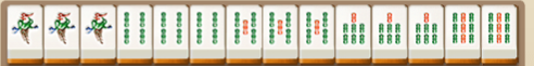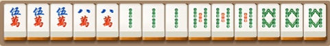 清七对:玩家手牌为暗七对牌型,没有碰过或者杠过,并且有四张牌是一样的,叫清七对。不再计七对。牌型如: