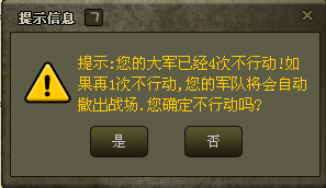 玩家超时与不行动相加达到4次后,当玩家第5次点击“不行动”按钮,将出现如下提示框: