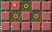 在作战开始前,棋盘上只有用户一方的棋子,这是提供用户的一个默认阵型,此时用户可以直接用鼠标单击需要交换位置的棋子,直到阵型令用户满意,就可以按下“保存布阵”按钮把当前布好的阵型存盘,下次使用时可以按下“载入布阵”按钮直接调入了。