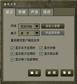 棋子单/双字显示:这两个选项为单选。修改选项并单击“确定”后,界面上棋子显示为该套风格棋子的单/双子